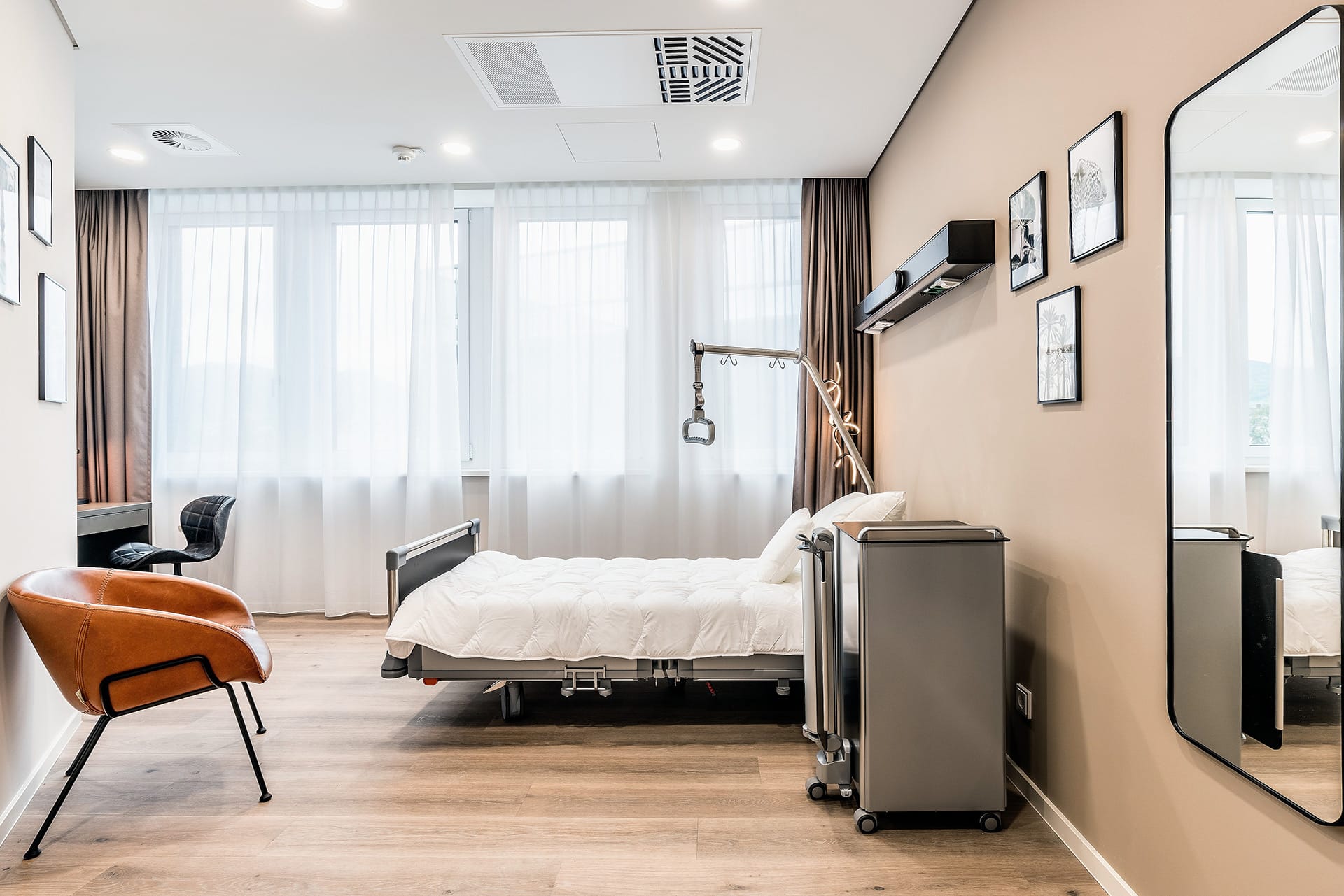 Ihr Komfort ist uns wichtig. Unsere Patientenzimmer, alle als Einzelzimmer konzipiert, bieten modernen Komfort und eine ruhige Atmosphäre zur Erholung. Der Gastronomiebetrieb unseres Hauses sorgt auf Wunsch auch gerne für eine persönliche Verpflegung direkt auf Ihrem Zimmer.